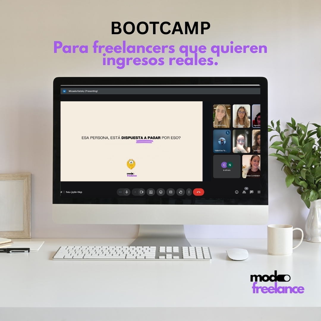Es un programa intensivo y práctico pensado para que avances en poco tiempo. En nuestro caso, incluye una guía educativa paso a paso, mentorías grupales con espacio para preguntas y feedback, y recursos descargables que podés aplicar directamente en tu camino freelance.